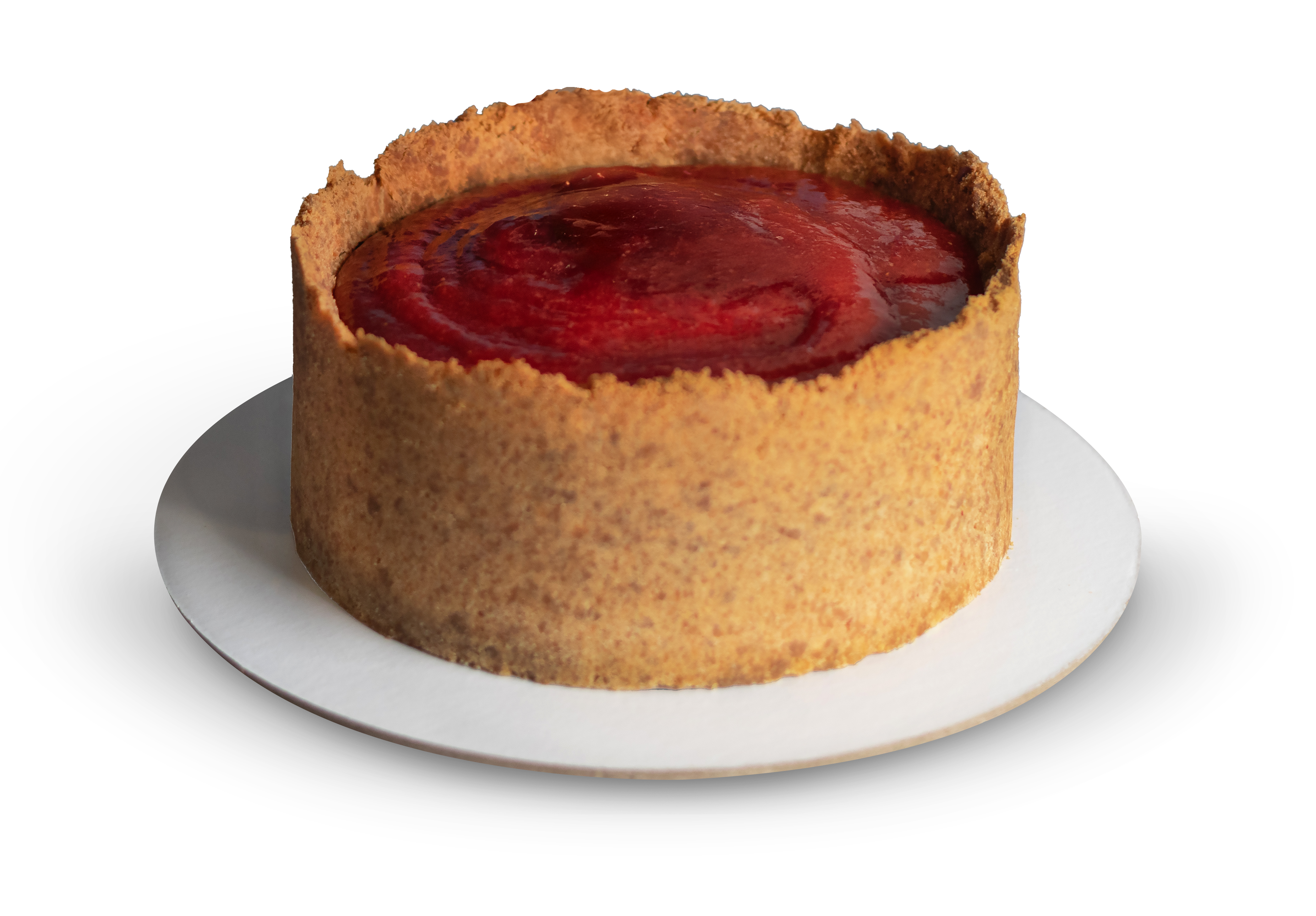 Con trozos de fruta en todo el relleno.